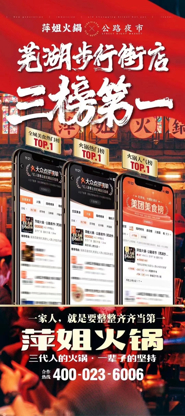 1、祝贺萍姐火锅芜湖步行街店获全城三榜榜首!