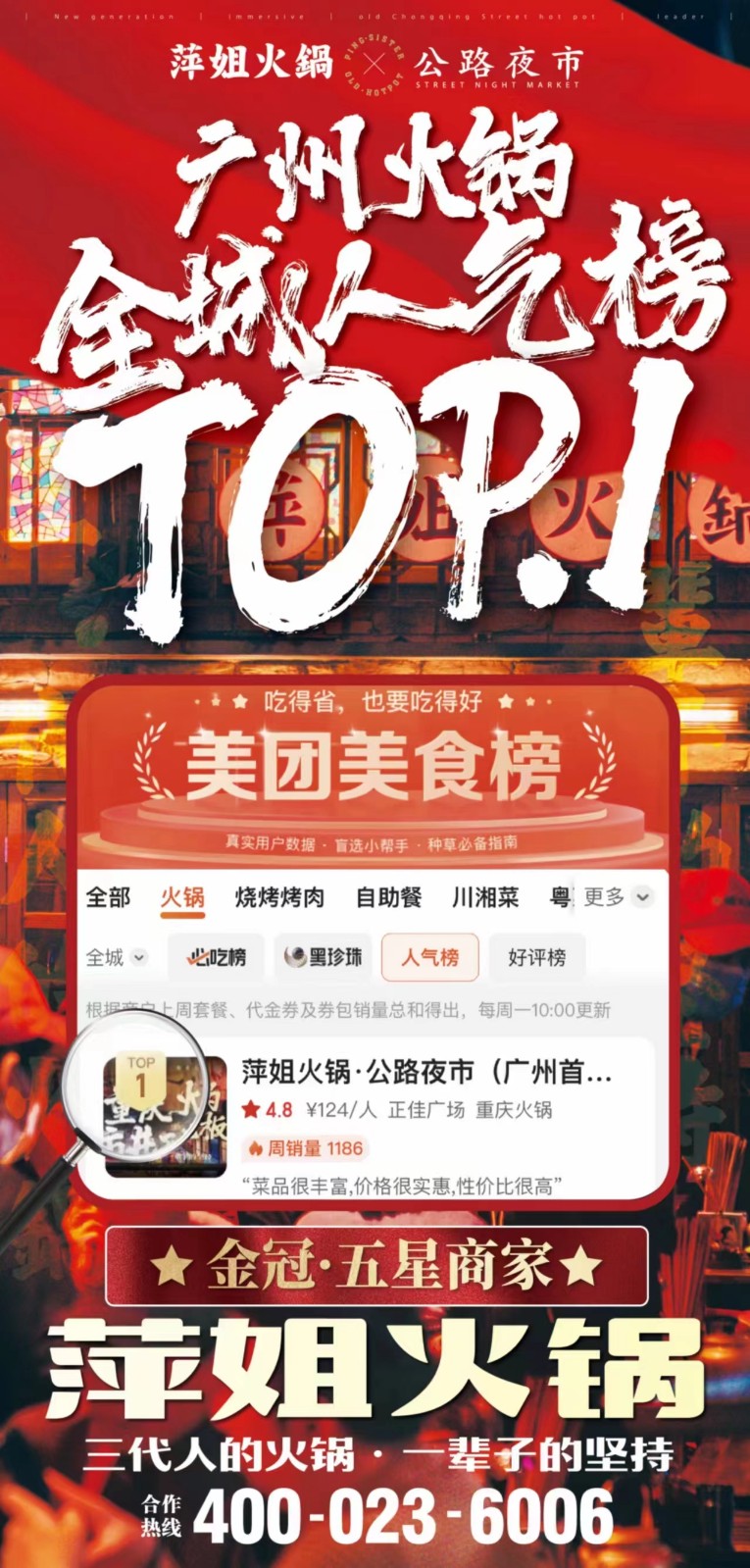 2、祝贺萍姐火锅广州首店获全城火锅人气榜一!