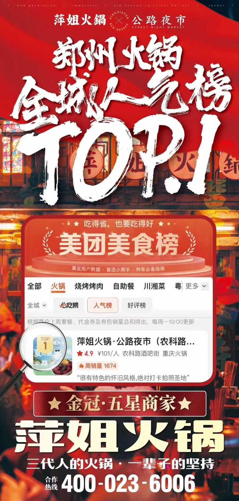 3、祝贺萍姐火锅郑州首店获全城火锅人气榜一!